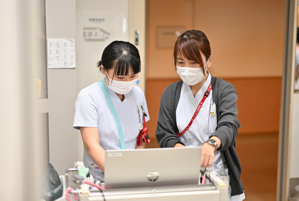 手術、化学療法、放射線療法、温熱療法など、様々な治療が行われています。そのため看護師は院内外の研修に積極的に参加し、安心・安全で根拠のある看護を提供できるよう日々努めています。また、他職種とも連携しながら個別の対応ができるようにしています。「人とよりそうひらかれた病院」という病院理念のもと、全ての患者・家族に寄り添う気持ちを忘れず対応することを心がけています。同時に“笑顔を絶やさない、明るく親しみやすい”も大切にしています。