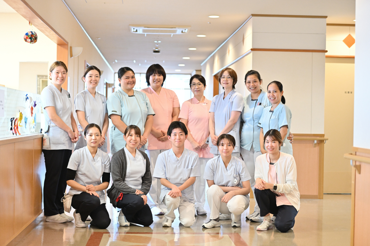 当病棟は、障害のある患者さんを中心に、がん治療中の方や終末期を含む緩和ケアを必要とする方も受け入れています。日常生活の援助や医療的ケアに加え、痛みや不安の軽減に配慮し、安心して療養していただける環境づくりを大切にしています。患者さん一人ひとりの思いに寄り添いながら、ご家族の不安や悩みにも耳を傾け、多職種が連携して、その人らしい生活と尊厳を支える看護を提供しています。